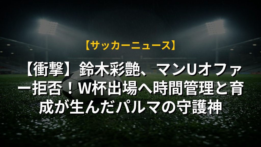 【衝撃】鈴木彩艶、マンUオファー拒否!W杯出場へ時間管理と育成が生んだパルマの守護神