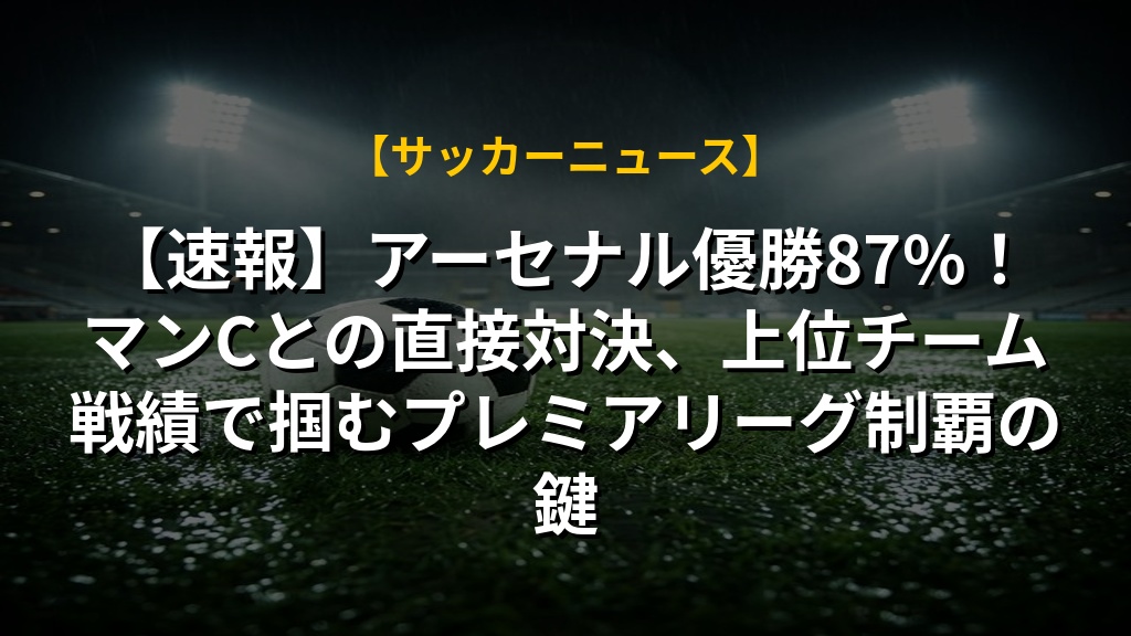 【速報】アーセナル優勝87%!マンCとの直接対決、上位チーム戦績で掴むプレミアリーグ制覇の鍵