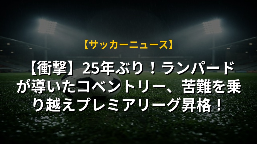 - フランク・ランパード監督率いるコヴェントリー・シティが、25年ぶりにプレミアリーグへ昇格。苦難の時代を乗り越えた歴史的快挙。