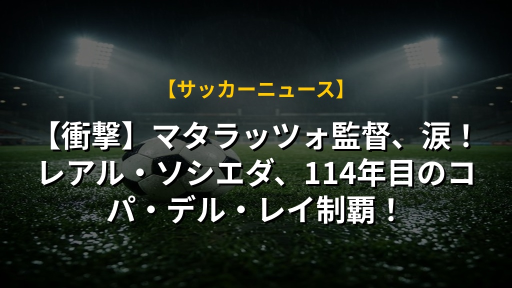 レアル・ソシエダがコパ・デル・レイで劇的な勝利を収め、マタラッツォ監督は感無量な様子です。クラブ史上4度目の優勝(公式には3度目)は、長年の努力と信念の結晶と言えるでしょう。特にPK戦で見せたチームの強さと、マレロ選手の活躍は印象的でした。監督や選手たちの「エスケリック・アスコ」(ありがとう)という言葉には、ファンへの深い感謝の思いが込められています。この優勝を機に、ラ・リーガでの更なる飛躍を期待したいですね。クラブの歴史に新たな1ページが刻まれました。