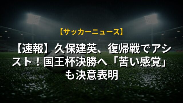 この勝利は、久保選手にとってプロキャリア初のタイトルであり、今後の日本代表での活躍にもつながる大きな自信となるでしょう。