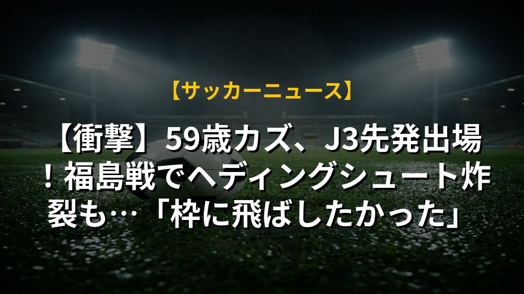 【衝撃】59歳カズ、J3先発出場!福島戦でヘディングシュート炸裂も…「枠に飛ばしたかった」