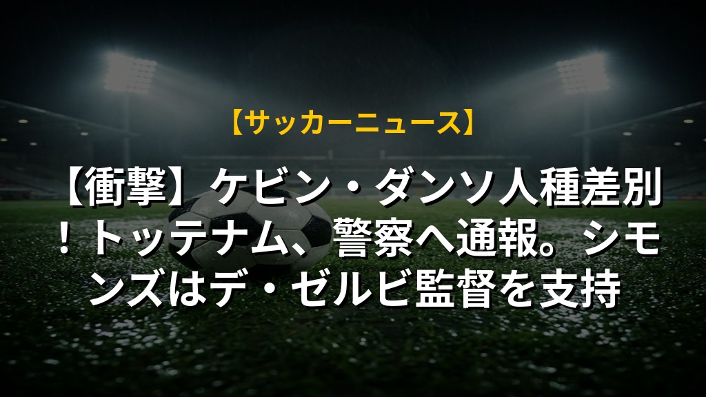【衝撃】ケビン・ダンソ人種差別!トッテナム、警察へ通報。シモンズはデ・ゼルビ監督を支持の注目ポイントまとめ
