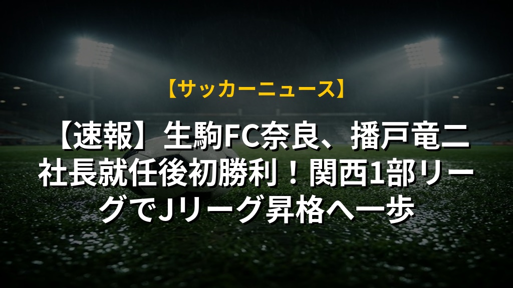 - 生駒FC奈良が、播戸竜二社長就任後初のリーグ戦勝利を挙げ、Jリーグ昇格へ好発進。