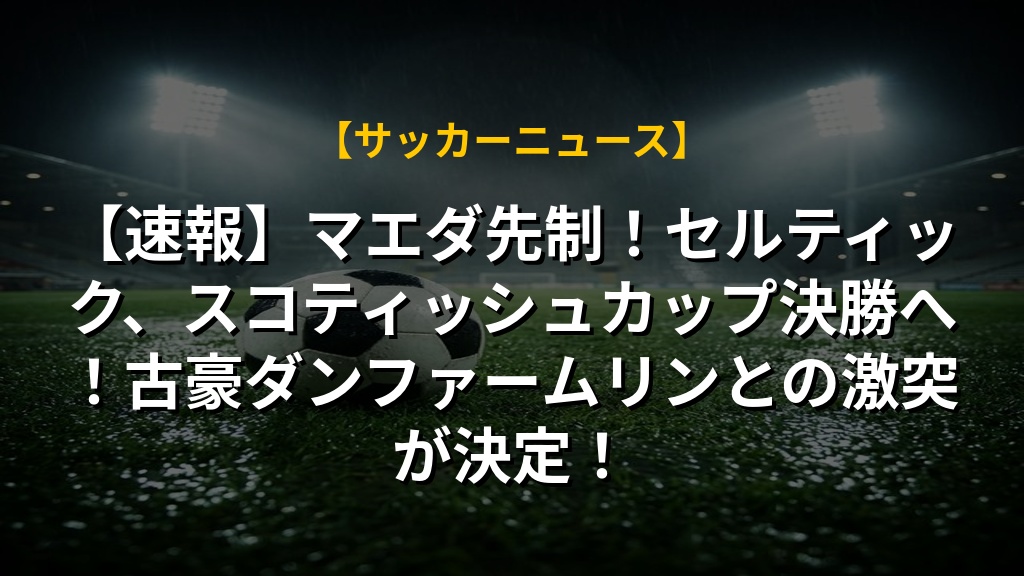 【速報】マエダ先制!セルティック、スコティッシュカップ決勝へ!古豪ダンファームリンとの激突が決定!の注目ポイントまとめ
