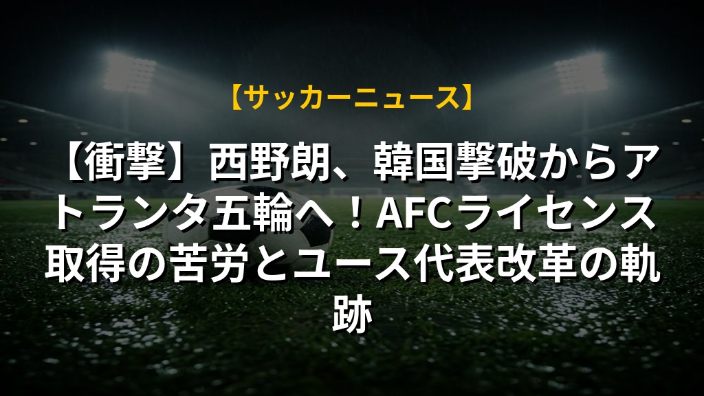 【衝撃】西野朗、韓国撃破からアトランタ五輪へ!AFCライセンス取得の苦労とユース代表改革の軌跡