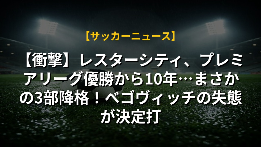 まさかレスター・シティが3部リーグ降格とは…。プレミアリーグ優勝からわずか10年、FAカップ優勝から5年でのこの落とし込みは、本当に衝撃的です。ベゴヴィッチ選手のミスがきっかけとはいえ、チーム全体の課題が浮き彫りになった結果と言えるでしょう。
