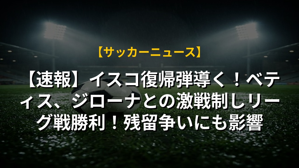 ベティスがジローナとの激戦を3-2で制し、2ヶ月ぶりのリーグ戦勝利を飾りました。特に注目は、5ヶ月の怪我から復帰したイスコ選手です。決勝ゴールにつながるプレーを見せ、チームに勢いをもたらしました。一方、ジローナは2度リードしたものの、ベティスの反撃に屈し、残留争いは厳しさを増しています。ベティスはイスコの復帰でさらに勢いをつけ、ヨーロッパリーグ出場権獲得に向けて大きく前進するでしょう。ジローナには、苦しい戦いが続きそうですが、諦めずに戦ってほしいですね。