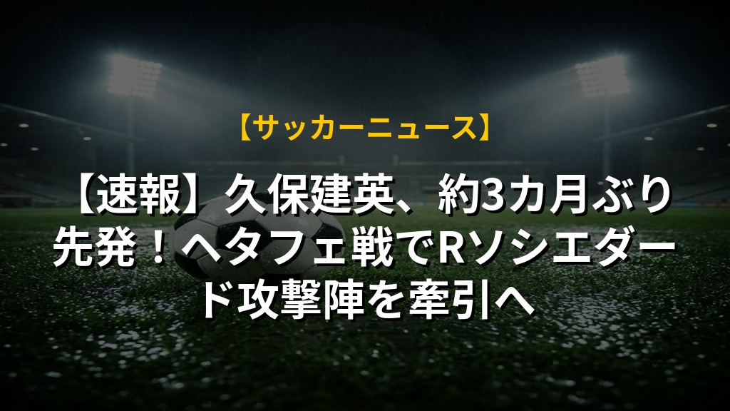 【速報】久保建英、約3カ月ぶり先発!ヘタフェ戦でRソシエダード攻撃陣を牽引へ