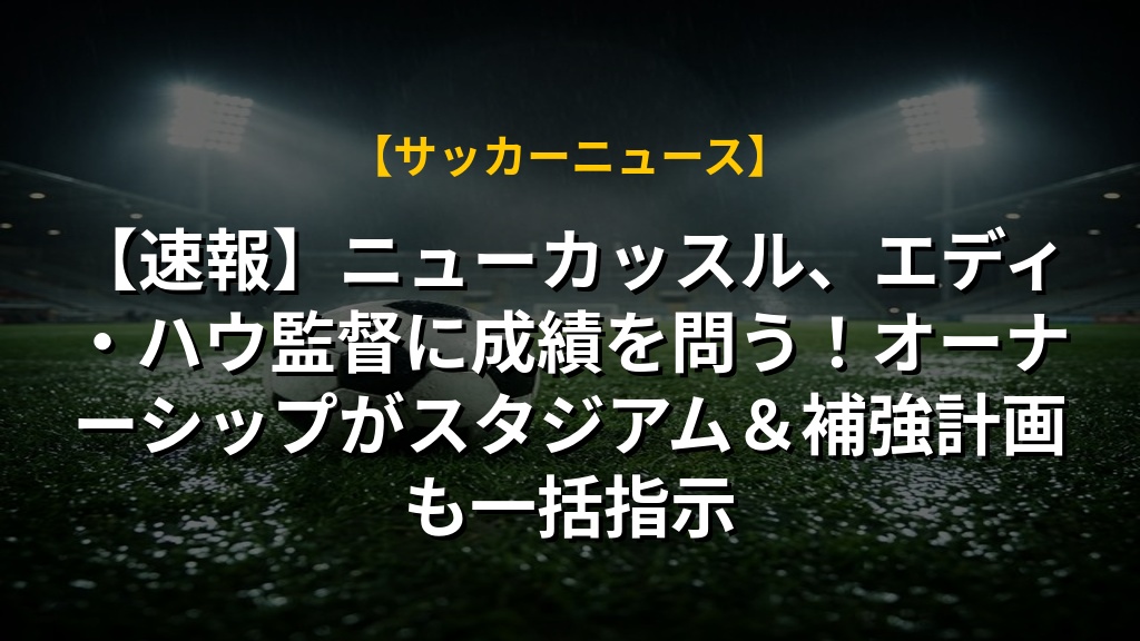 【速報】ニューカッスル、エディ・ハウ監督に成績を問う!オーナーシップがスタジアム&補強計画も一括指示