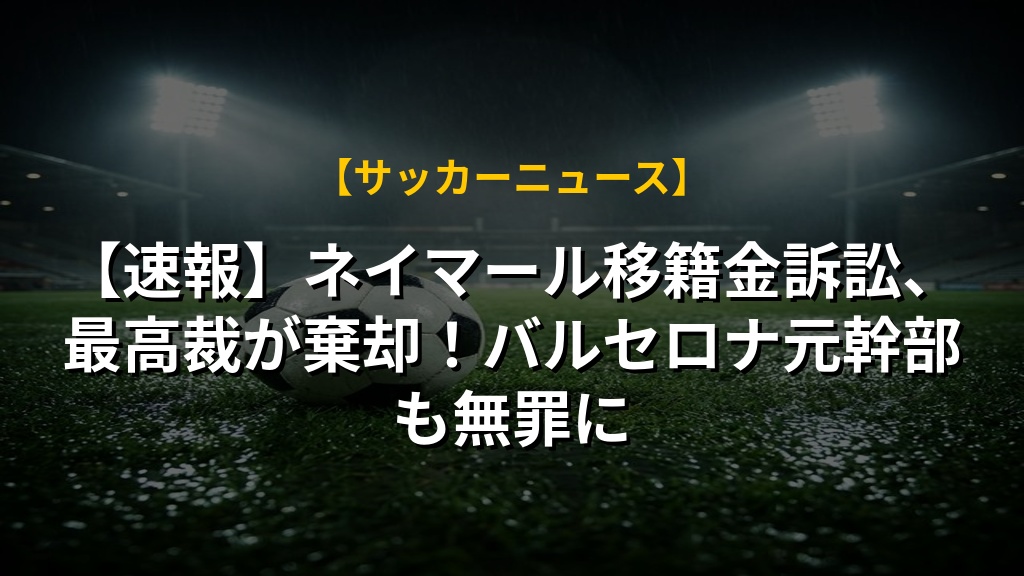 - ネイマール選手とバルセロナの元幹部は、移籍に関する詐欺と不正の訴追から無罪が確定。最高裁は「起訴の矛盾」を指摘。