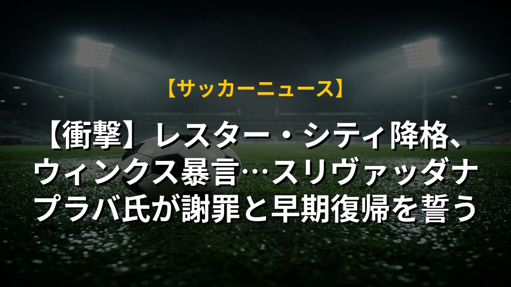【衝撃】レスター・シティ降格、ウィンクス暴言…スリヴァッダナプラバ氏が謝罪と早期復帰を誓う
