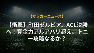決勝では前回王者アルアハリ(サウジアラビア)との激戦が予想されますが、町田の明確なビジョンと相馬選手の復帰は大きな力になるはずです。クラブW杯出場も夢ではなく、町田の挑戦がJリーグ全体を盛り上げてくれることを期待しています!