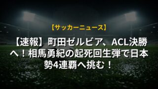 【衝撃】町田、ACL決勝へ!相馬勇紀が復帰即ゴール!日本代表への道も開く