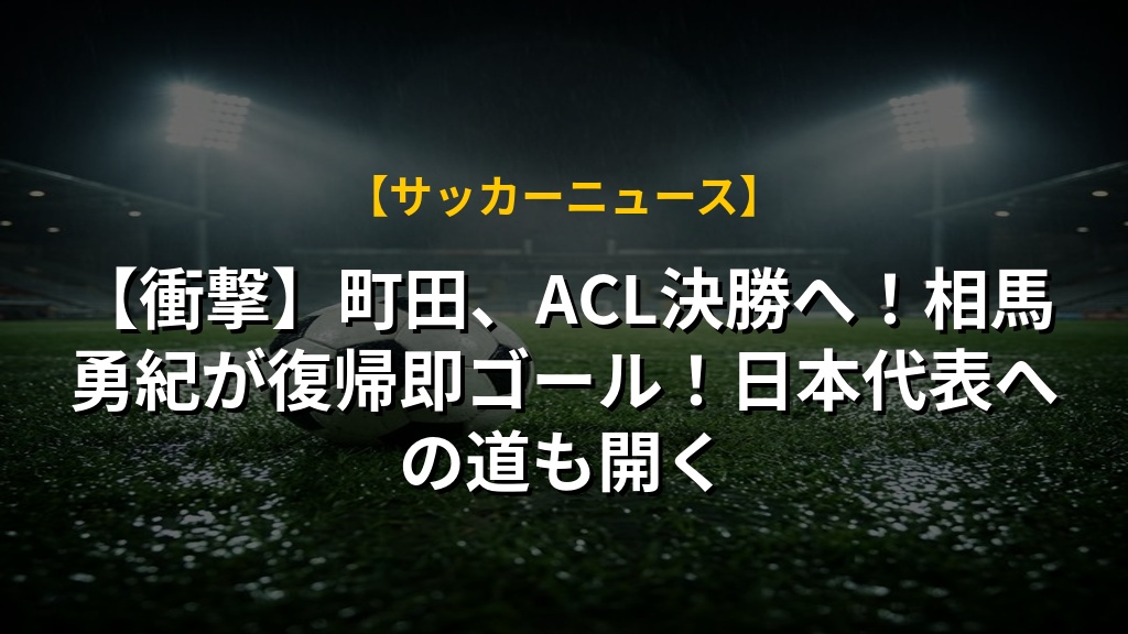 町田ゼルビアがACL準決勝でアルアハリ(UAE)を破り、アジア制覇に大きく一歩近づきましたね!怪我から復帰した相馬勇紀選手の決勝点は、チームだけでなく日本代表へのアピールにも繋がる素晴らしい一撃でした。
