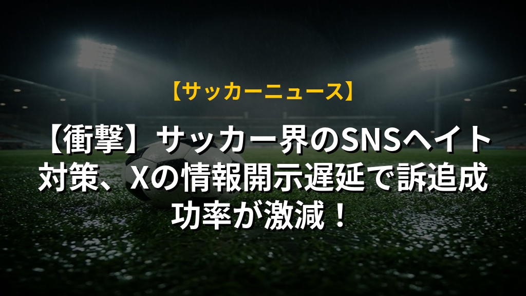 【衝撃】サッカー界のSNSヘイト対策、Xの情報開示遅延で訴追成功率が激減!