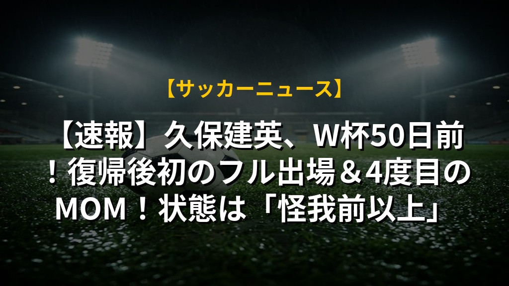 W杯北中米大会を目前に、久保選手のコンディションは日本代表にとって大きな希望です。