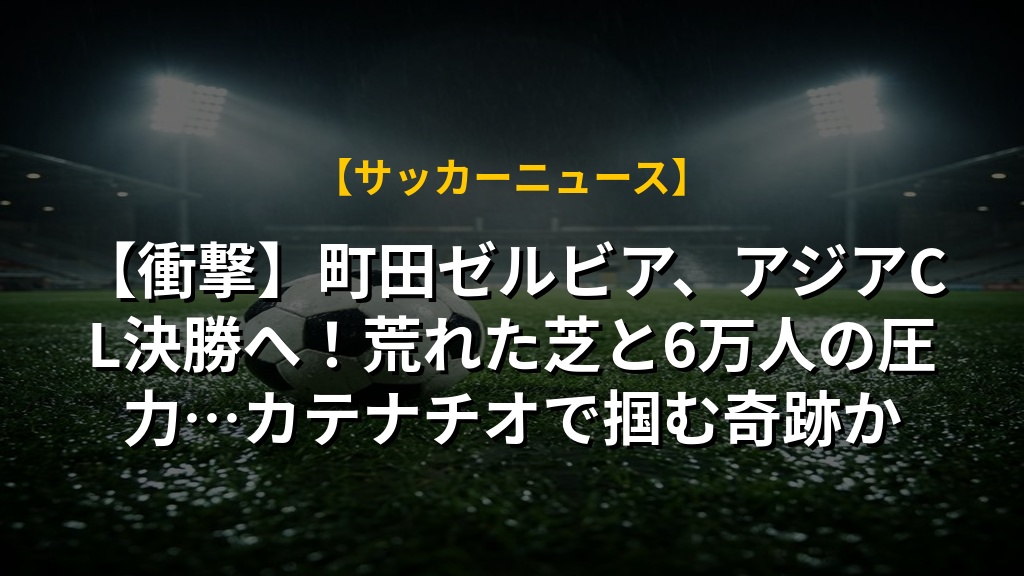 FC町田ゼルビアが、ついにアジアCL決勝の舞台に駒を進めました。黒田監督は、荒れた芝の状態や6万人の大観衆によるアウェーのプレッシャーを乗り越え、選手たちが冷静に戦えるよう、入念な準備を重ねています。