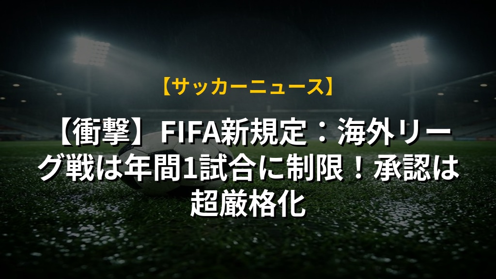 FIFAが海外リーグ戦開催に関する新たな規定を提案しました。年間1試合まで、さらに厳格な承認基準が設けられる見込みです。選手の負担やリーグへの影響を考慮し、FIFAが拒否権を持つ点が大きな変更点となります。