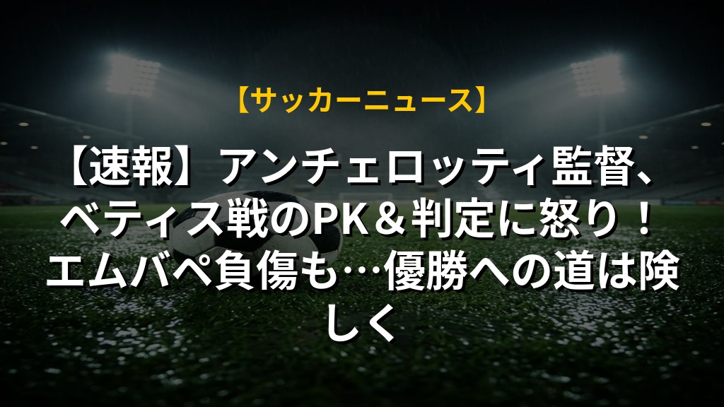 アンチェロッティ監督がベティス戦の判定に激しく不満を露わにしました。特に終盤の失点につながったファウルや、前半のPKチャンスの見逃しを批判し、審判の知識不足を指摘する場面もありました。エムバペ選手の負傷も気掛かりな状況です。