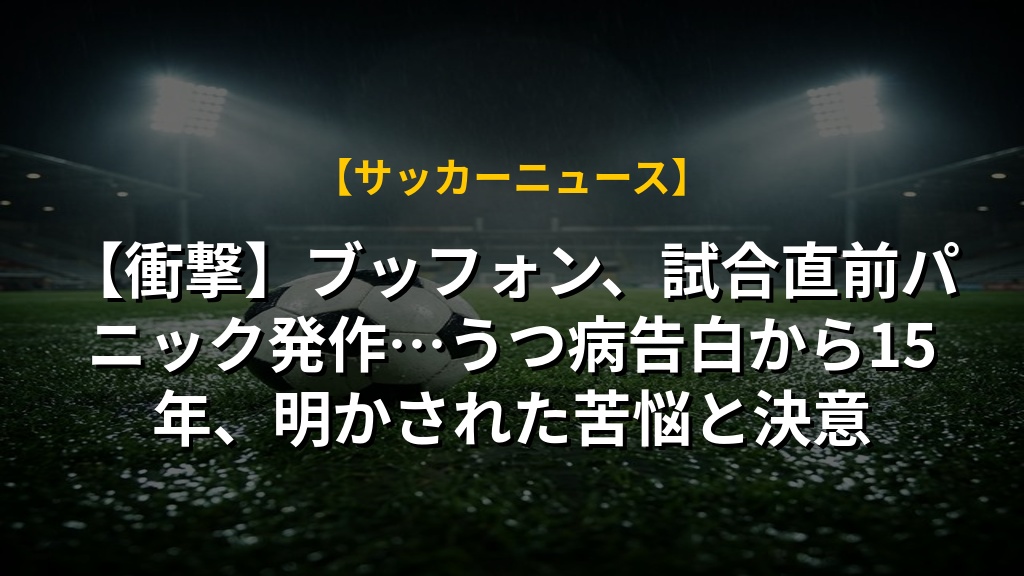 【衝撃】ブッフォン、試合直前パニック発作…うつ病告白から15年、明かされた苦悩と決意の注目ポイントまとめ