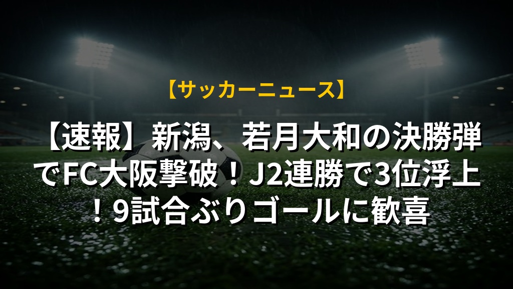 新潟がFC大阪との接戦を1-0で制し、2連勝で暫定3位に浮上しました。決勝点は、9試合ぶりにゴールを決めた若月大和選手による貴重な一撃です。若月選手は、監督からの期待に応え、練習で磨いた左足シュートでチームを勝利に導きました。