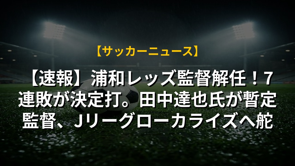 【速報】浦和レッズ監督解任!7連敗が決定打。田中達也氏が暫定監督、Jリーグローカライズへ舵の注目ポイントまとめ