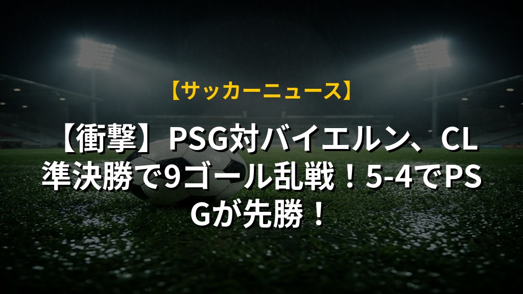 PSG対バイエルンのCL準決勝第1戦は、まさかの9ゴール乱戦!両チームの攻撃的な姿勢が光り、息をのむ展開が続きました。オリセ選手のドリブルやクヴァラツヘリア選手の活躍など、見どころ満載の試合でした。5-4とPSGがリードしましたが、バイエルンの諦めない姿勢も印象的で、次戦が今から待ち遠しいです。この試合は、サッカーの新たな可能性を感じさせる、記憶に残る一戦となりました。今後のCLで、より攻撃的なスタイルが主流になるかもしれませんね。