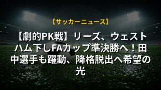 【劇的PK戦】リーズ、ウェストハム下しFAカップ準決勝へ!田中選手も躍動、降格脱出へ希望の光