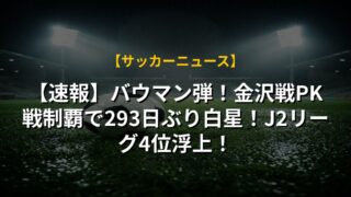 【速報】バウマン弾!金沢戦PK戦制覇で293日ぶり白星!J2リーグ4位浮上!