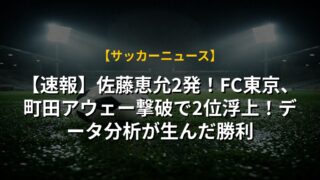 【速報】佐藤恵允2発!FC東京、町田アウェー撃破で2位浮上!データ分析が生んだ勝利