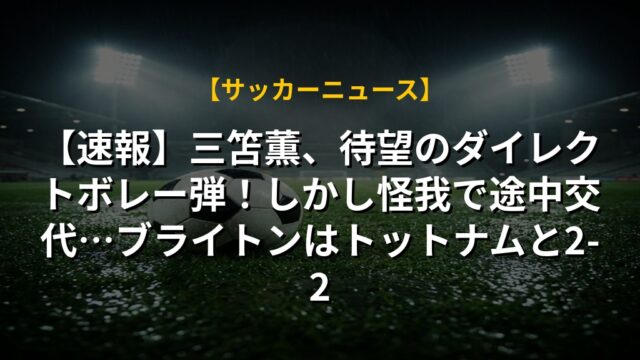 【速報】三笘薫、待望のダイレクトボレー弾!しかし怪我で途中交代…ブライトンはトットナムと2-2