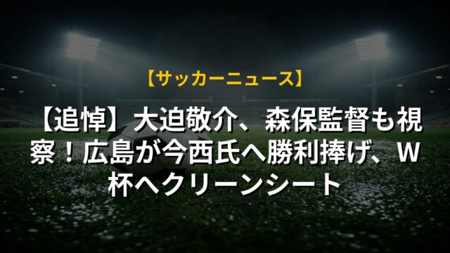 【追悼】大迫敬介、森保監督も視察!広島が今西氏へ勝利捧げ、W杯へクリーンシート
