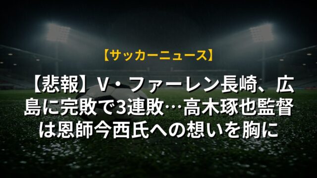 【悲報】V・ファーレン長崎、広島に完敗で3連敗…高木琢也監督は恩師今西氏への想いを胸に