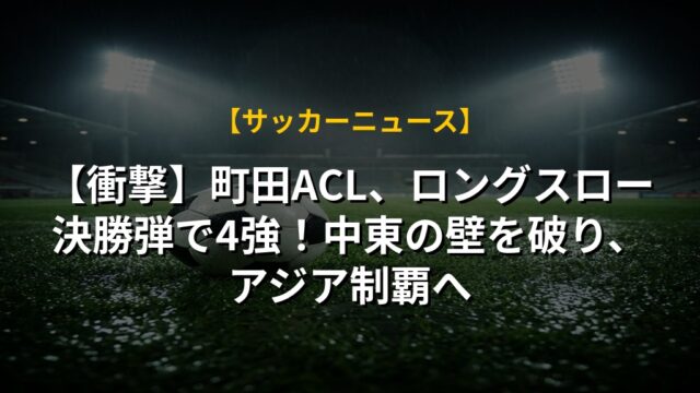 【衝撃】町田ACL、ロングスロー決勝弾で4強!中東の壁を破り、アジア制覇へ
