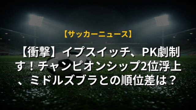 【衝撃】イプスイッチ、PK劇制す!チャンピオンシップ2位浮上、ミドルズブラとの順位差は?