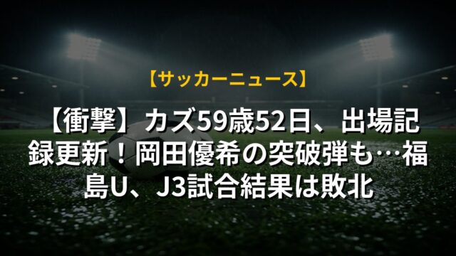 【衝撃】カズ59歳52日、出場記録更新!岡田優希の突破弾も…福島U、J3試合結果は敗北