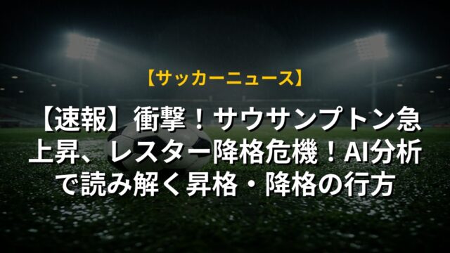 【速報】衝撃!サウサンプトン急上昇、レスター降格危機!AI分析で読み解く昇格・降格の行方