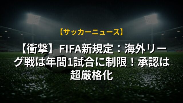 【衝撃】FIFA新規定:海外リーグ戦は年間1試合に制限!承認は超厳格化