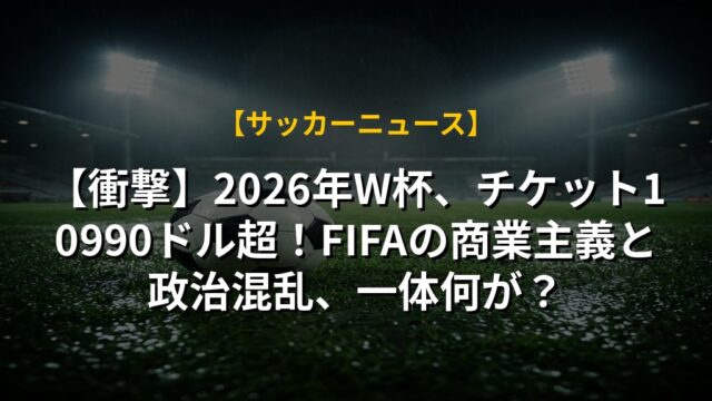 【衝撃】2026年W杯、チケット10990ドル超!FIFAの商業主義と政治混乱、一体何が?
