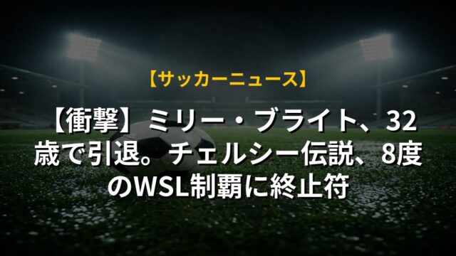 【衝撃】ミリー・ブライト、32歳で引退。チェルシー伝説、8度のWSL制覇に終止符