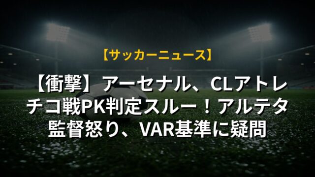 【衝撃】アーセナル、CLアトレチコ戦PK判定スルー!アルテタ監督怒り、VAR基準に疑問