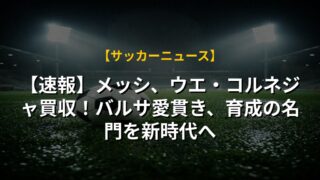 【速報】メッシ、ウエ・コルネジャ買収!バルサ愛貫き、育成の名門を新時代へ