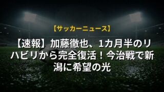 【速報】加藤徹也、1カ月半のリハビリから完全復活!今治戦で新潟に希望の光