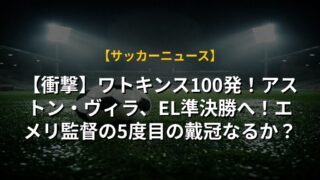 【衝撃】ワトキンス100発!アストン・ヴィラ、EL準決勝へ!エメリ監督の5度目の戴冠なるか?