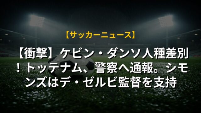 【衝撃】ケビン・ダンソ人種差別!トッテナム、警察へ通報。シモンズはデ・ゼルビ監督を支持