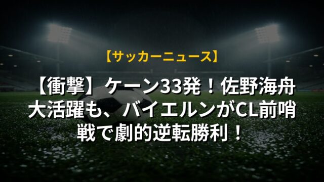 【衝撃】ケーン33発!佐野海舟大活躍も、バイエルンがCL前哨戦で劇的逆転勝利!