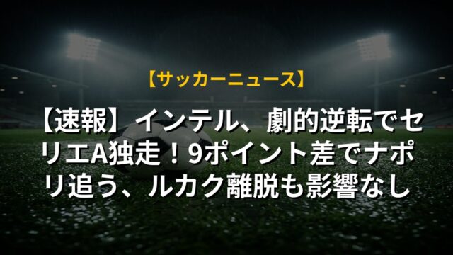 【速報】インテル、劇的逆転でセリエA独走!9ポイント差でナポリ追う、ルカク離脱も影響なし