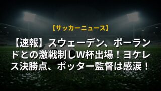 【速報】スウェーデン、ポーランドとの激戦制しW杯出場!ヨケレス決勝点、ポッター監督は感涙!