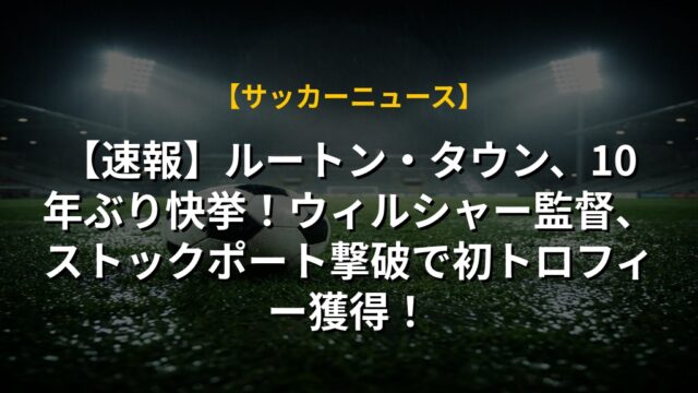 【速報】ルートン・タウン、10年ぶり快挙!ウィルシャー監督、ストックポート撃破で初トロフィー獲得!